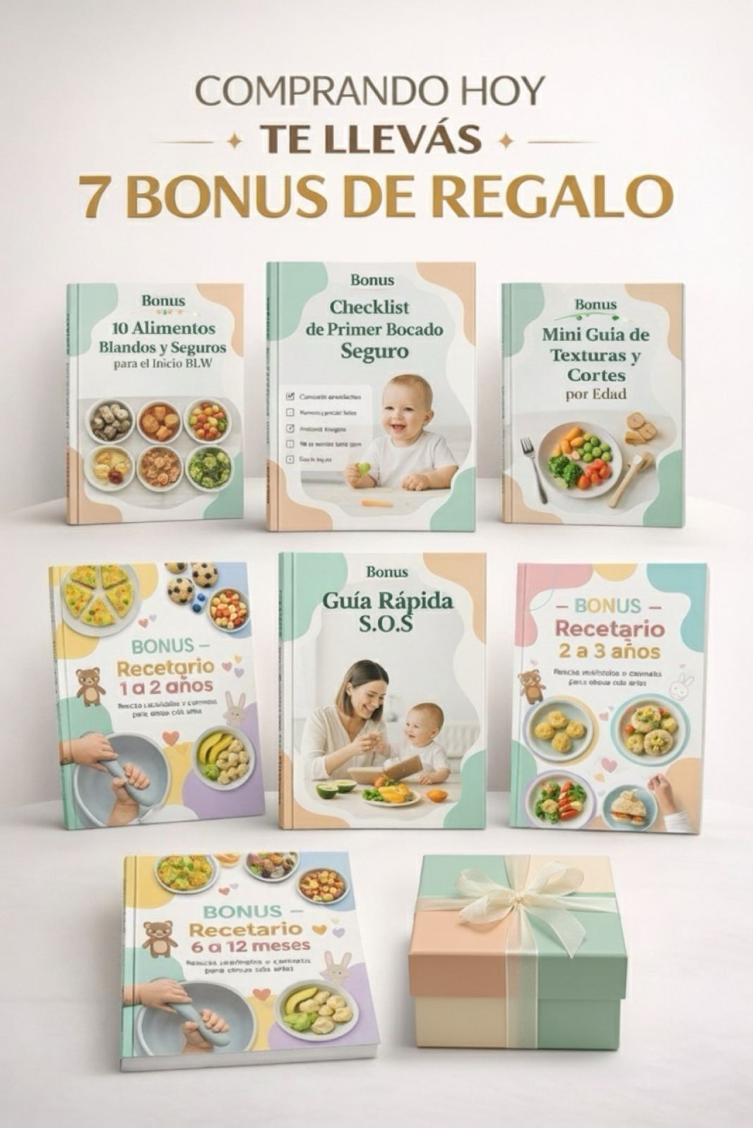 Incluye fundamentos, señales de madurez, primeros alimentos, texturas, recetas simples, menú semanal, alimentos permitidos y no permitidos, checklist y acompañamiento emocional para la mamá.